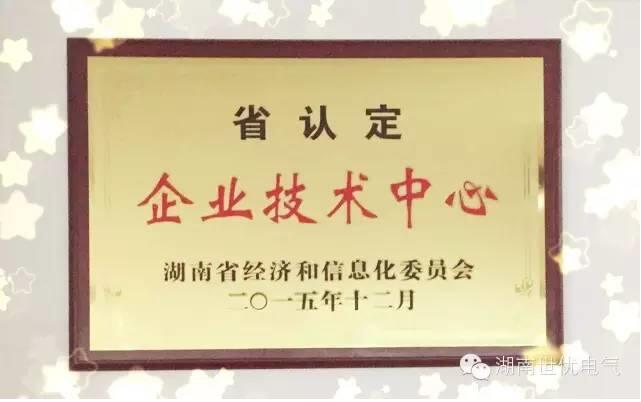 湖南世優電氣股份有限公司技術中心于2016年3月14日正式挂牌成爲湖南省認定企業技術中心。