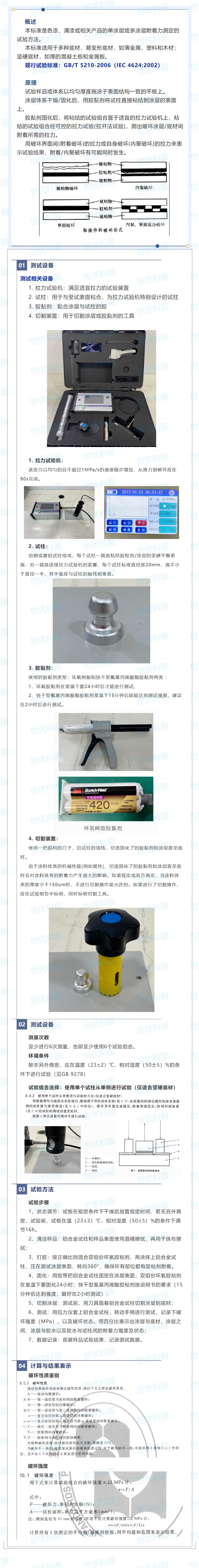 塗層拉拔力試驗(GB/T 5210-2006 色漆和(hé)清漆 拉開(kāi)法附着力試驗)